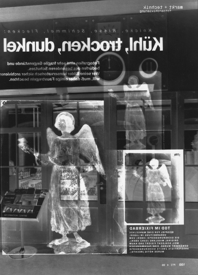 Die ersten Arbeiten mit dem Titel “X-Re-Kapitulation” beschäftigen sich mit Fotomagazinen, wobei ich zunächst in der Dunkelkammer Fotogramme von Magazinseiten erstellt, später auch aus Details Farb-Dias am Leuchtpult hergestellt habe, die die vielfältigen Topoi von Kunstmagazinen bis zu Hobby-Reise-Akt-Blättern zeigen.